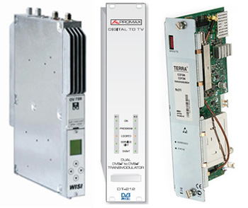غیر هم کانال : سیگنال دریافتی از آنتن گیرنده ، تقویت و تغییر کانال داده شده و پس از تقویت نهایی توسط آنتن فرستنده دوباره در محدوده فاقد پوشش انتشار می یابد . مزیت این سیستم بر روش هم کانال این است که تداخل هم کانال به حداقل ممکن می رسد و ضعف آن در قیمت بالاتر آن است . در شکل زیر سه نمونه از این ترانس مدولاتور ها که قابلیت تغییر کانال سیگنال تلویزیون دیجیتال ورودی را دارند را می بینید .